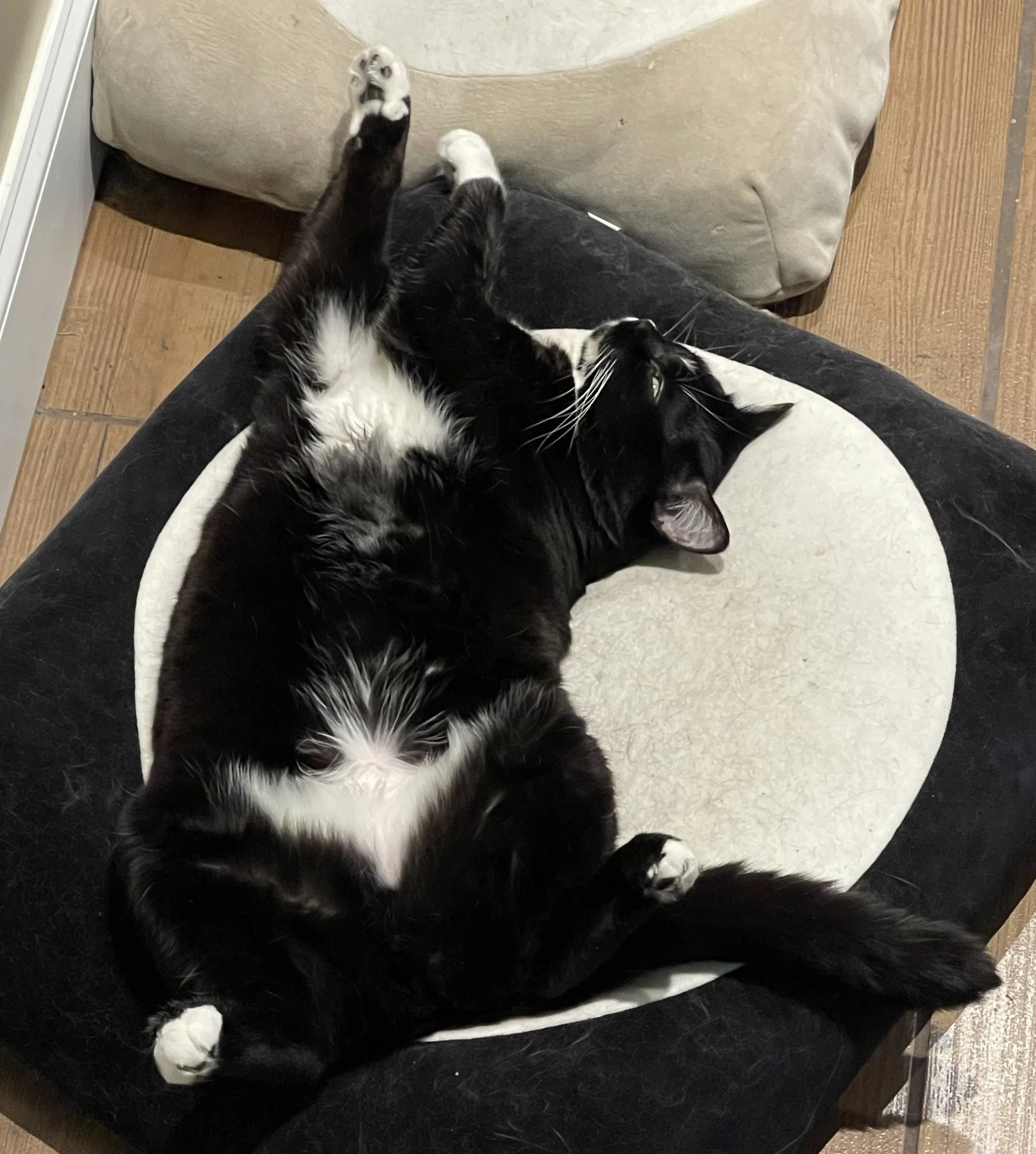 Ideas over action, Lenny’s steadfast focus on naps and dinner helps to pace the workday at Happy History Cats.